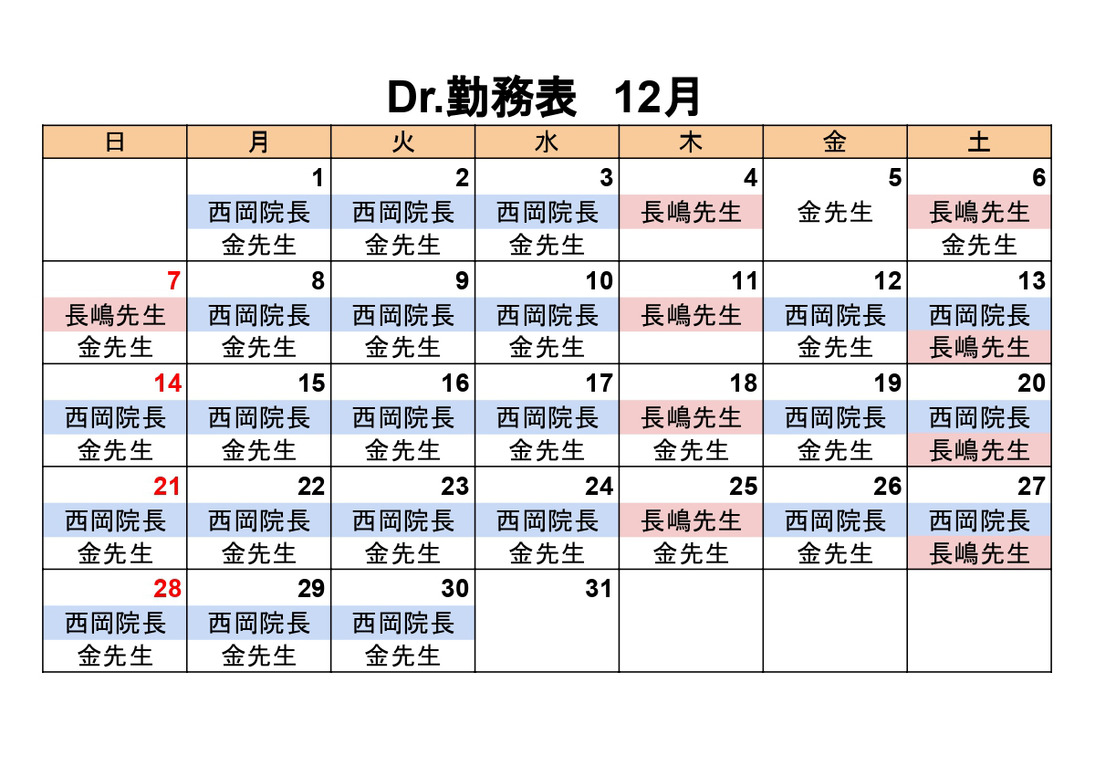 12月のDr出勤日です。